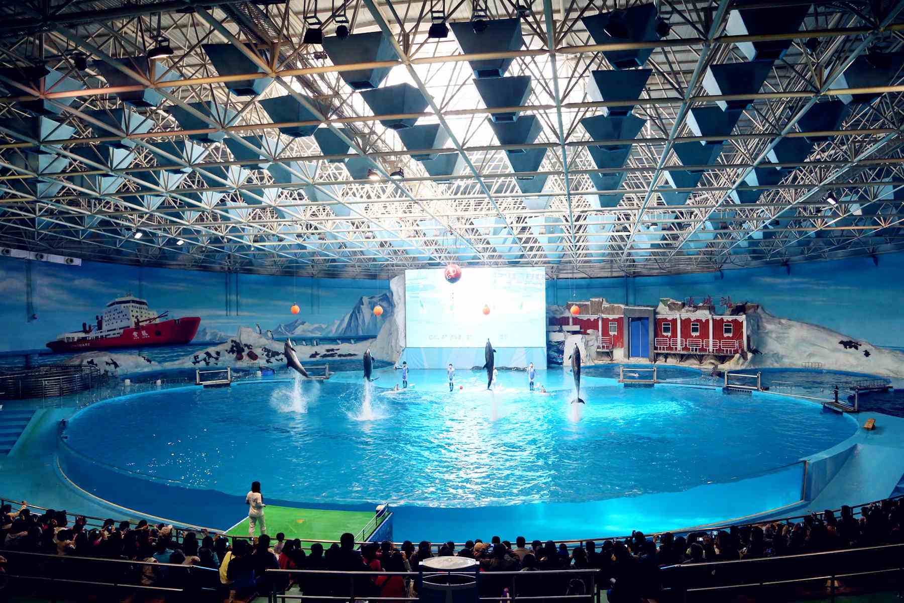 坐落于青岛石老人度假区南侧,是大型的极地海洋动物展示和表演馆。 馆内拥有白鲸、企鹅、北极熊等两百余只极地动物,另还有许多珍稀海洋生物在馆内展示。 馆里的珍稀极地动物和表演、海底隧道里的多种鱼类以及欢乐剧场里的动物表演,都是公园里的热门看点。 在一楼仿佛置身水底,到二楼则是从陆地、甲板和冰山上观察水面,可以从多个角度尽情地接触海洋动物。
