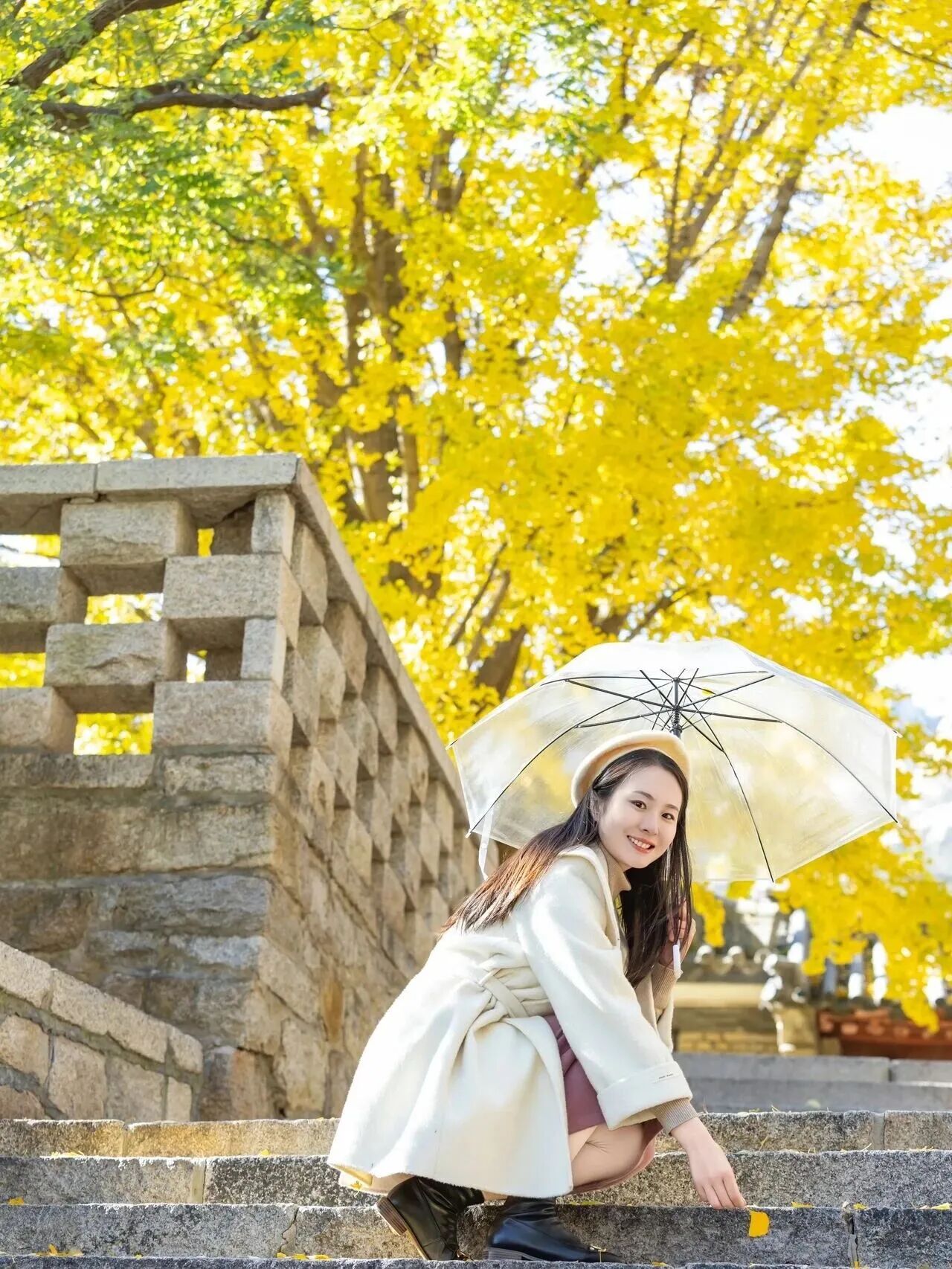 主要观赏点:登山路和华严寺(黄叶), 最佳观赏期11月上旬到11月中旬。