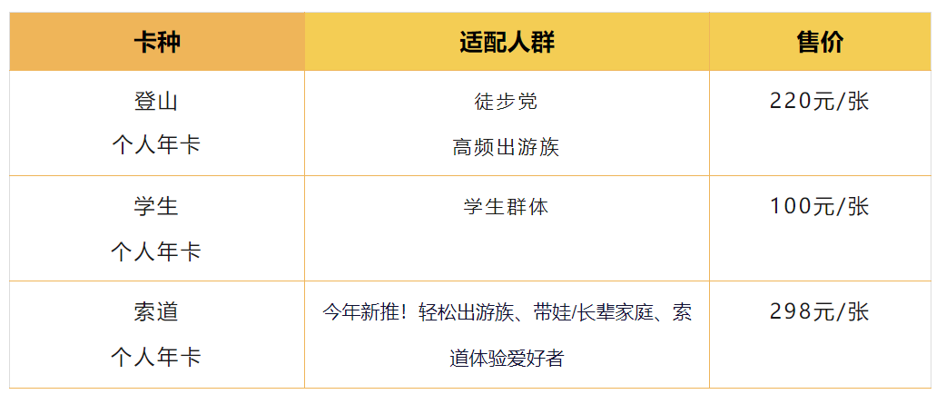 年卡套餐明细(按需pick)