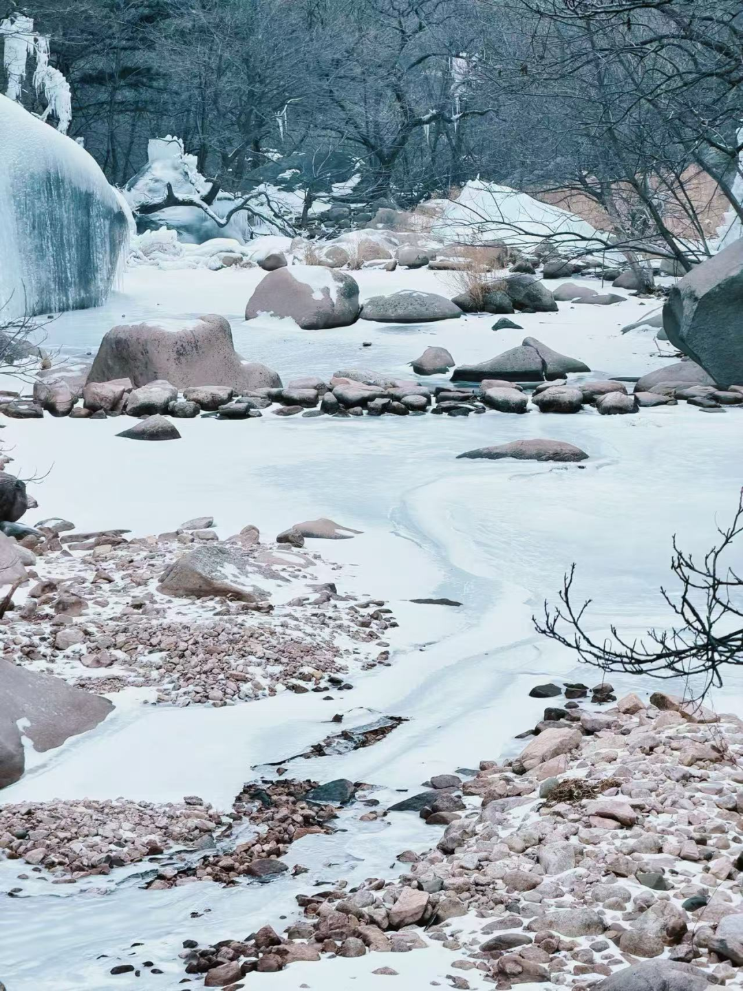 冬日的九水,是崂山最动人的冰雪秘境。褪去往日奔腾的姿态,溪流在严寒中凝结,化作形态各异的冰瀑奇观,随手一拍都是仙气满满的大片。