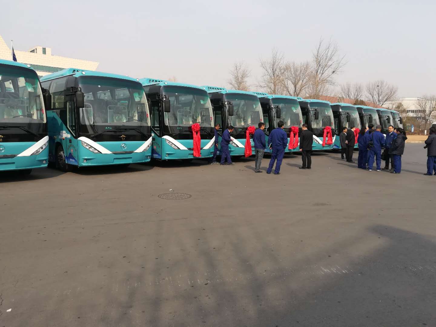 在崂山游客服务中心,一排排崭新的大客车整齐的停放在停车场内,不时还有些挂着临时牌照的新的大客车驶入,这些大客车就是今年崂山风景区全新的旅游观光车。