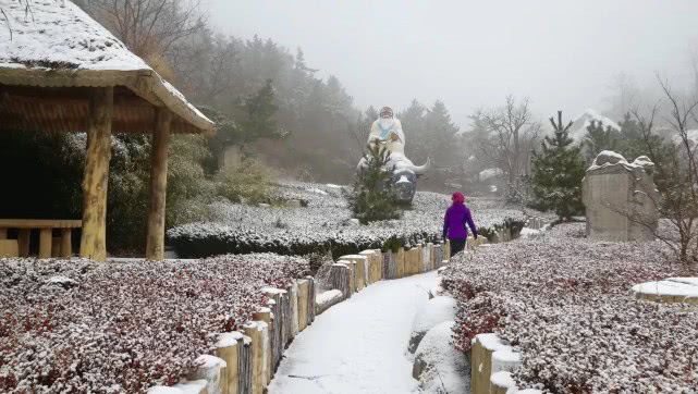 北国风光,瑞雪纷飞”。1月4日,崂山巨峰游览区一夜饮雪,开启了 2019年崂山壮美景色的帷幕。雪花漫天飞舞,亭台楼榭、群山奇峰,在洁白晶莹的雪花映衬下,仿佛都变成了水墨画,一步一景皆在画中。从山顶俯瞰,山舞银蛇,凝霜挂雪,花草树木已被妆裹成玉树琼枝,瑞雪与群山,美景与想象,也在此刻完全融为一体,让前来游玩的市民大呼过瘾,不少游客陶醉在美景中,纷纷拍照留念,用镜头定格雪中事、雪中景。游客林女士表示,“知道今天下雪后,第一时间就开车来到了巨峰游览区,就为了欣赏新年的第一场雪,老话说,瑞雪兆丰年,这就是大自然送给我们最好的新年礼物”。