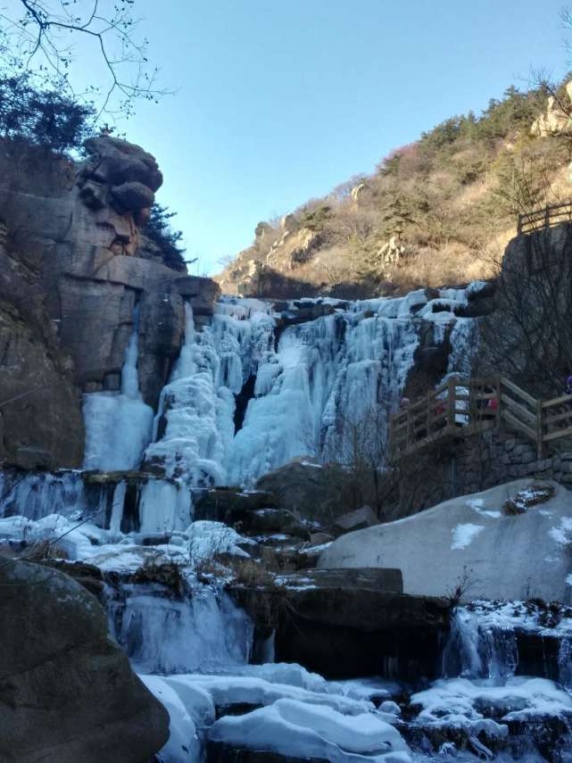 “冰凝流瀑断飞烟,瞬变玉帘挂九天。”受气温骤降、温差大等影响因素,崂山九水游览区一改往日的“灵动、活泼”,开始上演一年一度的冰瀑奇观。九水冰瀑已成为崂山冬季旅游的代表性景观。