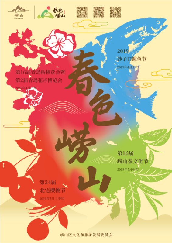2019“春色崂山”活动秉持全域旅游理念,狠抓时尚攻势,以“踏青觅春、赏花迎春、采樱尝春、饮茶品春”为主要活动特色,以鲅鱼节、枯桃花会、樱桃节、茶文化节等特色节会为主线,整合我区春季休闲旅游资源,打造集特色节会、大美崂山、美丽乡村、购物餐饮、文体盛宴、精品民宿于一体的旅游产业链,营造周周有活动、月月有亮点的热烈氛围。