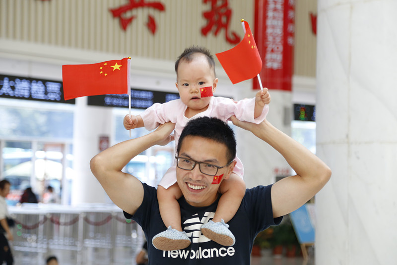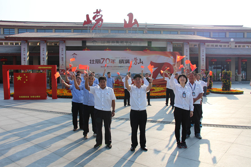 崂山风景区内处处洋溢着庄严、隆重、喜庆、祥和的节日氛围,记者来到崂山游客服务中心,看到中央广场摆放庆祝中华人民共和国成立70周年宣传展板和主题花坛;悬挂灯笼、张贴国庆主题宣传海报、悬挂宣传彩旗;在三个游客服务中心组织红歌快闪活动,由工作人员带领游客舞动国旗齐唱红歌;在景区内设置了“我和我的祖国”留言展板,每位游客都可以在这记录下对于祖国的热爱之情;为游客提供手摇国旗、脸贴等充满爱国情怀的小饰物,同时在各核心景点准备国庆打卡道具,供游客拍照留念......客服中心工作人员介绍说:“十一当天,我们客服大厅、南车场LED屏现场直播阅兵式、国家领导人讲话视频,游客们可以实时观看。”