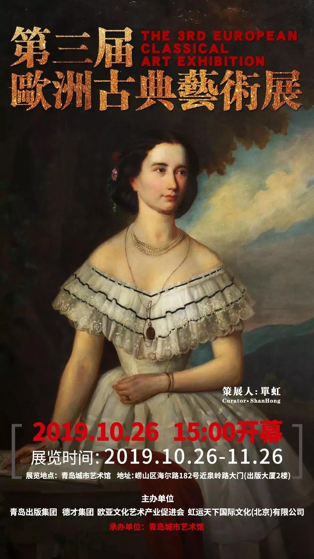 由青岛出版集团、德才集团、欧亚文化艺术产业促进会、虹运天下国际文化(北京)有限公司主办,青岛城市艺术馆承办的“第三届欧洲古典艺术展”,将于10月26日下午三点在青岛出版大厦二号楼隆重开幕。