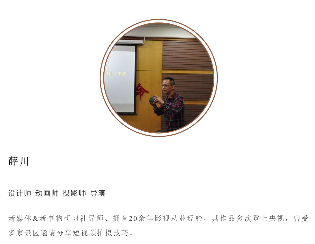 从徒手拍摄防抖技巧,到各自实用剪辑软件的应用,薛川从专业的角度为大家揭秘了那些堪比电影画面的短视频镜头是如何用手机拍摄出来的,以及如何运用手机在不同场景中拍好短视频。