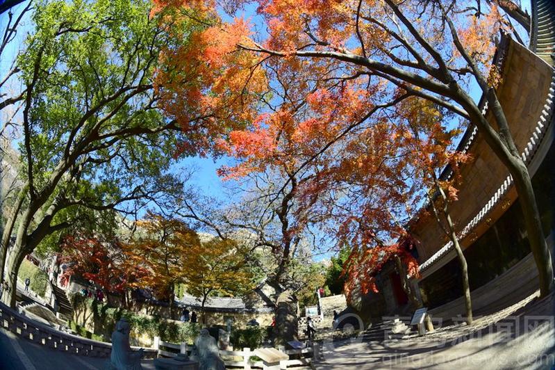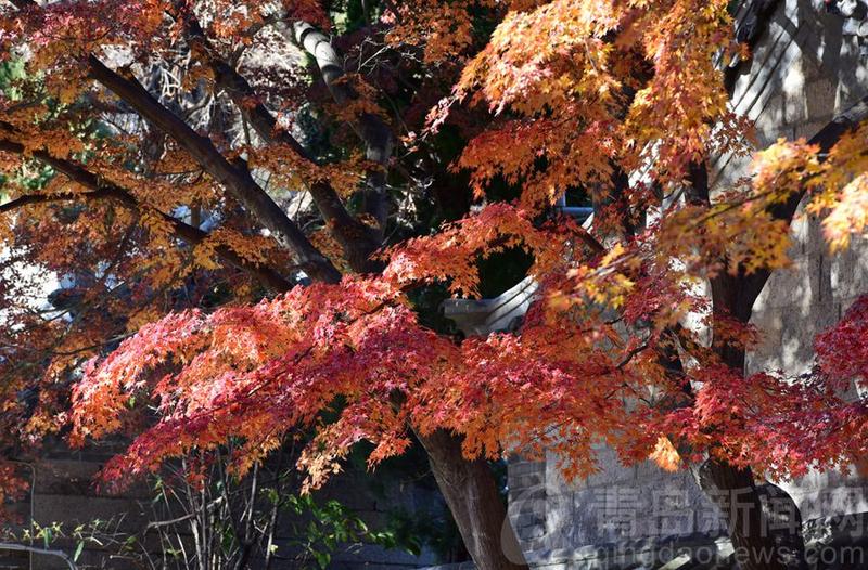 崂山南线深处的古观太清宫里,古枫树的树叶依然红艳似火,腊梅花已然凌寒绽放,香气沁人心脾,绝美景色令人惊叹不已。