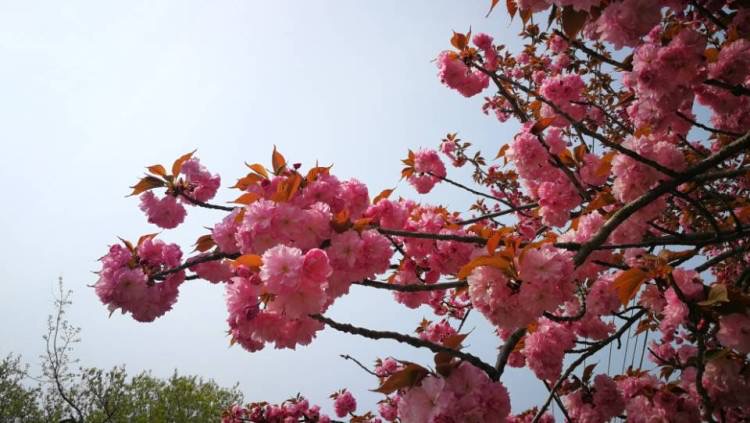 双樱也称晚樱,与单樱一起虽然都叫樱花,但风格迥然不同,花朵以饱满、丰腴之美倍受人们喜爱。双樱较单樱盛开时间要晚,颜色也更鲜艳。镜头所到之处,那满树浅粉色、深粉色、粉白相间的樱花,正开得轰轰烈烈。