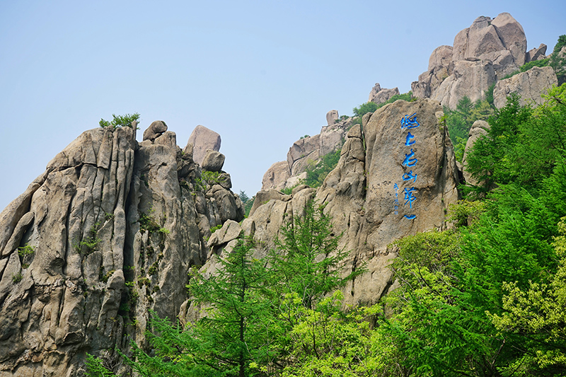 登临巨峰的沿途,秀峰幽谷看不尽,怪石涧流赏不完,历史文化也融人自然风光之中,上十八盘的文化名人群雕、巨峰山门的楹刻、环游巨峰的八卦门、高崖巨石及亭阁的题字,将崂山的文脉与道场,表达给到访的人们,引发壮美的联想和启迪。