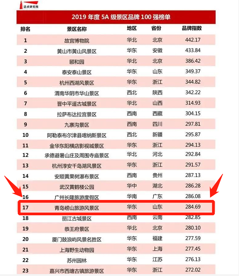 好消息!2019年中国5A级景区年度百强榜单中,崂山风景区强势上榜!!!