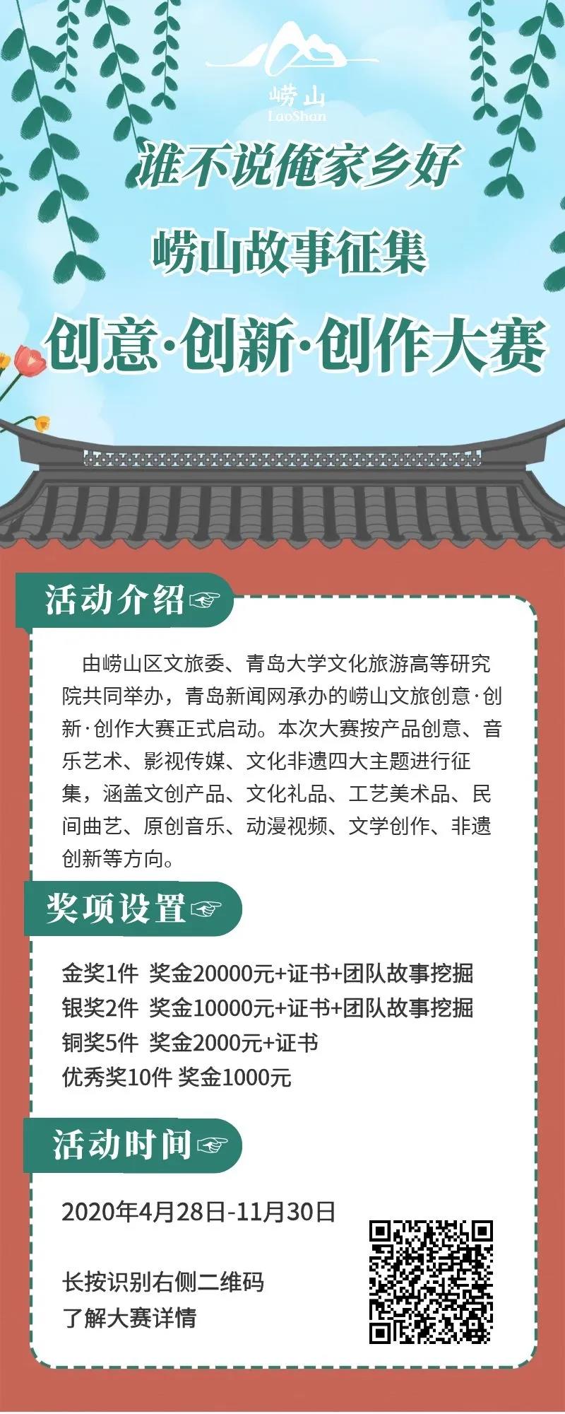 小伙伴们不要拘泥于这几种形式只要你有脑洞,有想法,敢创造,你的idea够味!让崂山故事焕发新的生机和活力,大奖就属于你!
