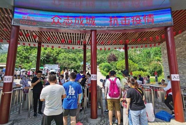 客服中心分别在游客流量管理关口前置至中央广场南、北入口,设置2处预检区,按照三级查验措施进行分区分级查验。一级预检区重点查验门票预约信息,售票人员岗位前置至中央广场南北入口,协助引导游客网上预约;二级查验区精准查验健康绿码。中央广场内设置50余处健康码快捷申请、出示提示牌,增派保安、志愿者提醒、帮助游客主动出示健康码,保持安全距离。三级安检区进行体温检测和安全检查。两台远红外测温仪、安检仪同时运行,对所有入园游客进行体温检测、火种探测,引导游客有序进入客服大厅检票换乘,严禁不按规定佩戴口罩、体温异常人员入园。