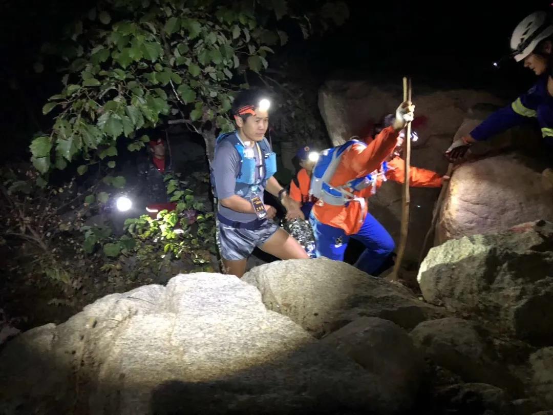 比赛当天,当莫言总监和志愿者们带着最后一名选手安全归来,他和志愿者们都默默退后,让选手自己冲线。选手拿过主持人的麦,哽咽感谢赛事总监莫言和团队一路互送和照亮,保护他安全完赛。
