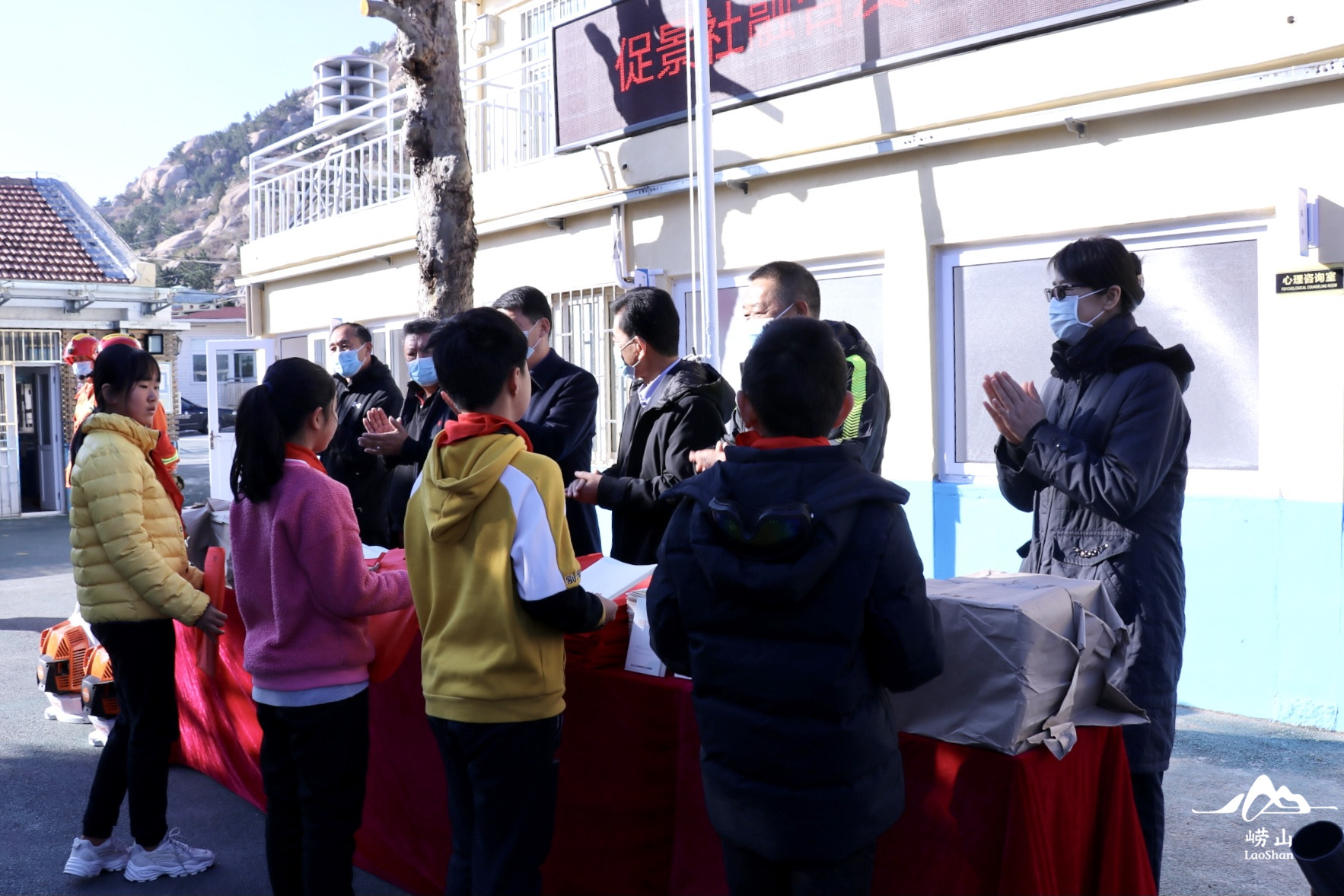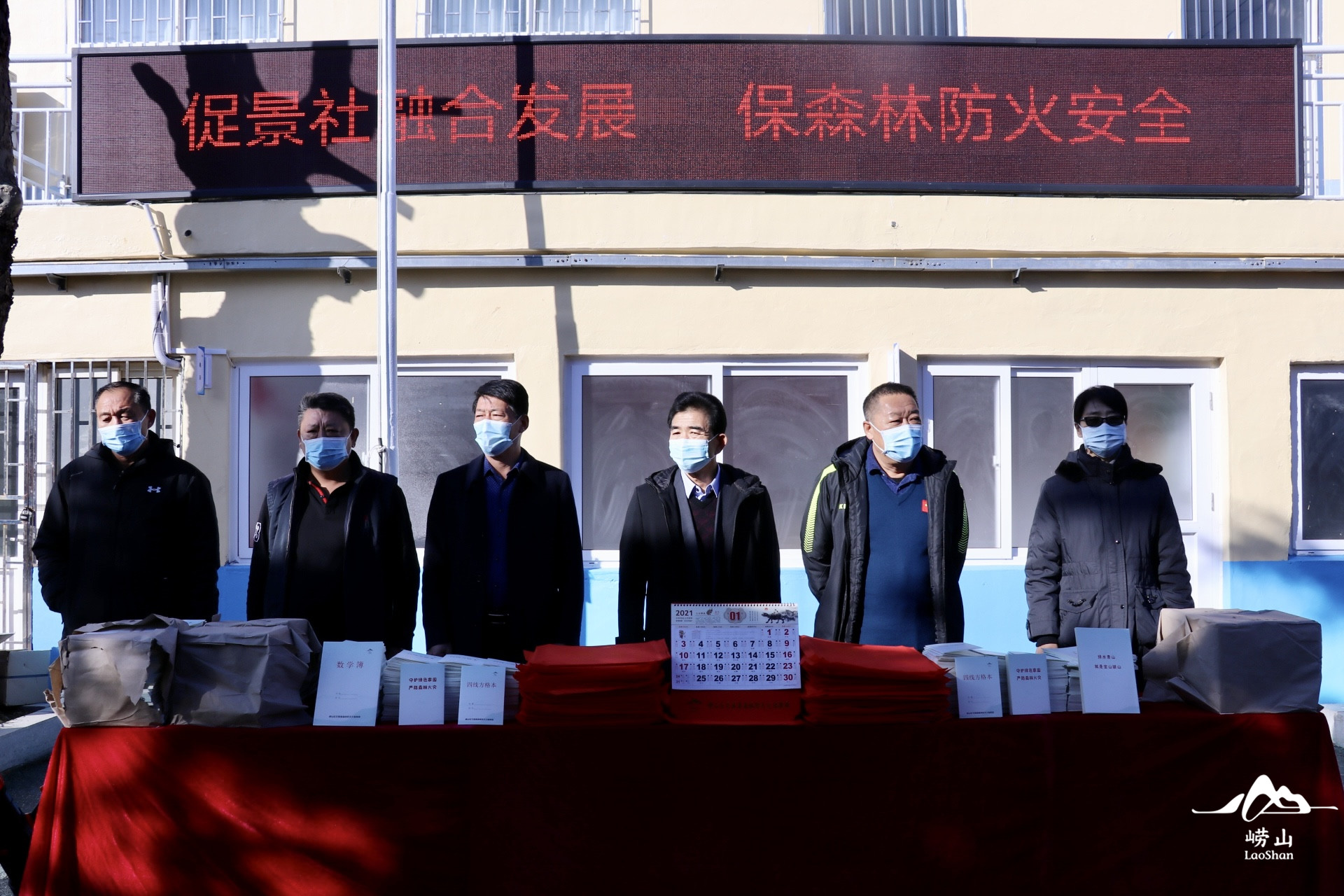 12月4日上午,崂山区文旅委副主任苏本江带领崂山林场、太清管理处、王哥庄教育中心和青山、黄山口社区相关负责同志走进青山小学开展专题森林防火宣传活动。活动以“森林防火人人有责,绿水青山全民共享”为主题,现场向青山小学师生发放印有护林防火知识和标识的挂历牌和作业本,护林防火专业队员现场为小学生普及风力灭火机工作原理、并与师生趣味互动问答,极大提升广大师生森林防火法治观念和安全意识,让保护好崂山青山绿水的理念根植于心。