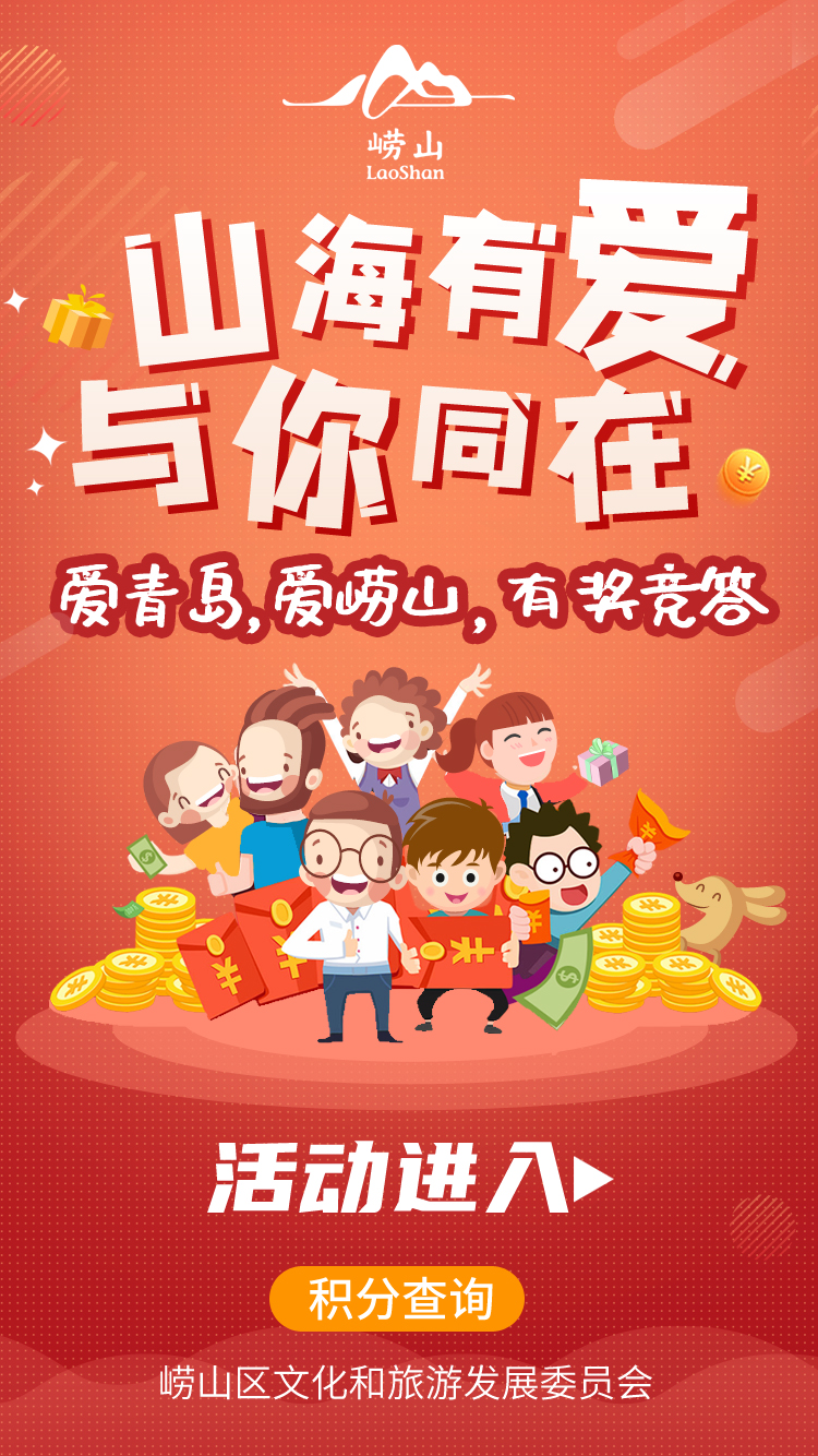 答题采用每日一答、积分奖励模式,积分累计达到520分,即可自动获得定制版“崂山爱心旅游年卡”。每天参与答题都有小惊喜,“压岁红包”、“崂山环游秘籍”、“海尔世界家电博物馆门票”、“休闲消费券”、“崂山绿茶”等等各种爱心奖品惊喜不断。崂山区文旅委还特别设立了“崂山爱心旅游年卡”,获得爱心年卡的人员,尊享一年期不限次预约游览崂山风景区。