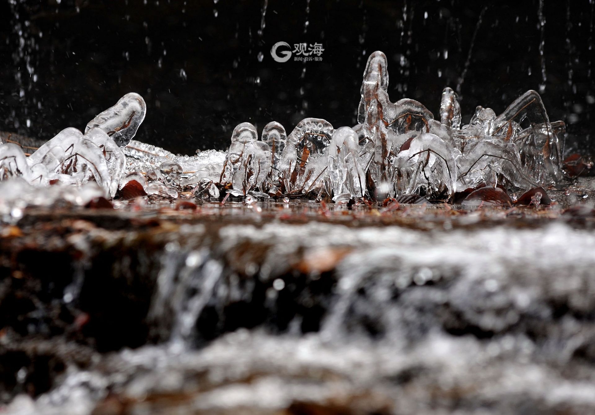 融化的冰柱千姿百态,或如钟乳,或如琥珀,或如水晶。融化和跳跃的水花相应成趣,勾画出不一样的北九水风貌。