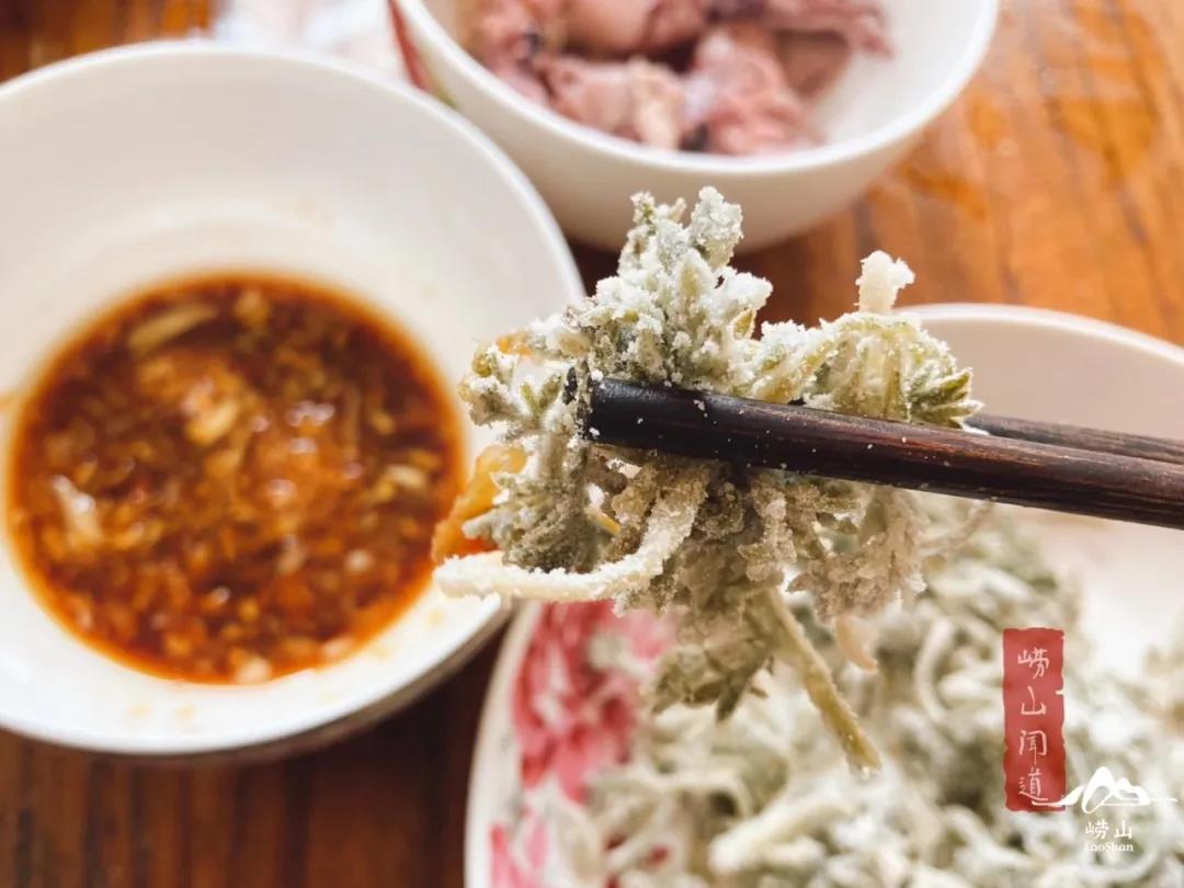 城市的草丛里常见的蒲公英,到了崂山里面就变成了清热解毒的婆婆丁,许多自然的食材不需要繁复的加工,清洗之后直接蘸酱吃便是最好的吃法。