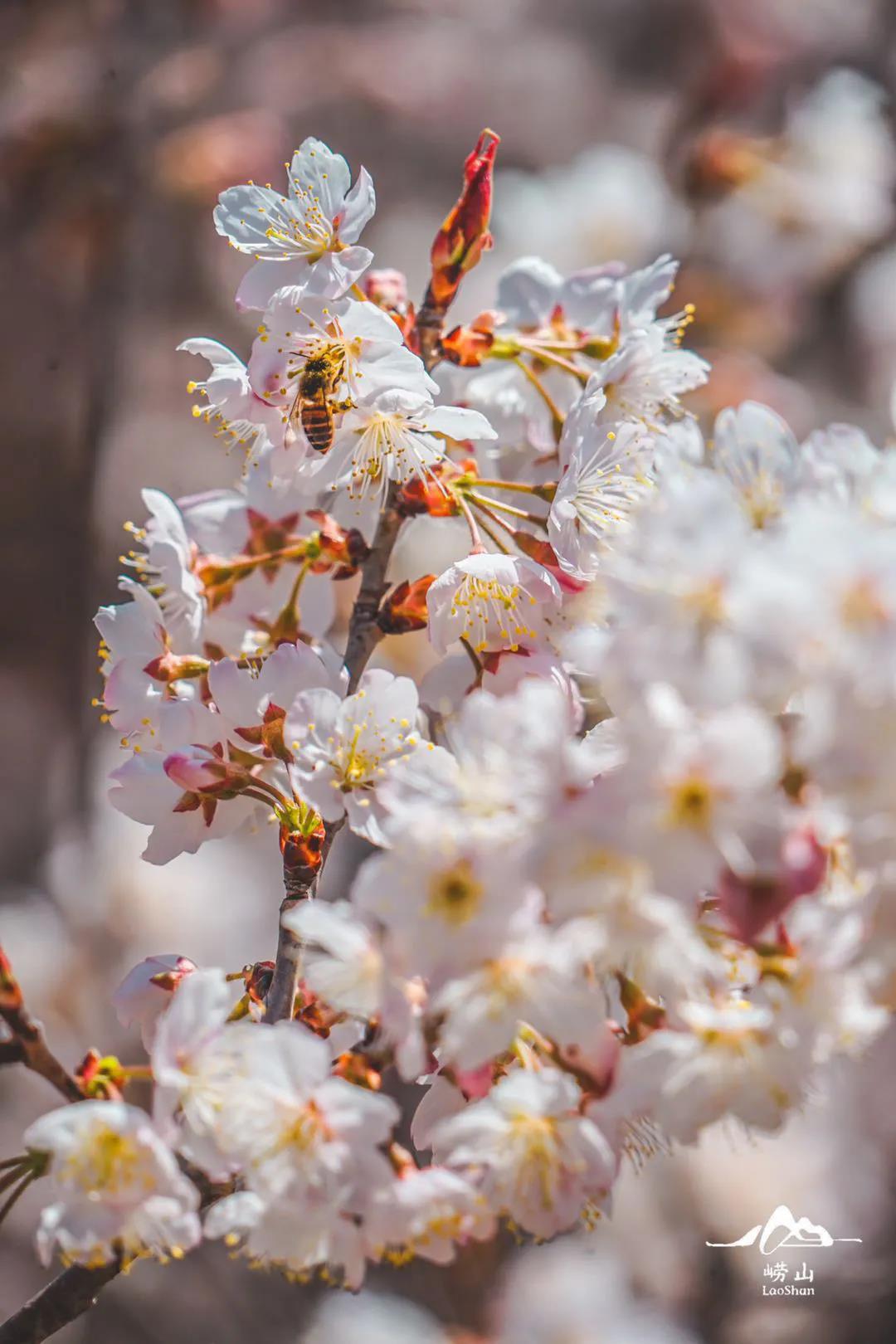 此时,春风里,万亩樱桃花开,灿若云霞一片。如果说崂山的诗情画意,藏在巍峨的仙山和通透的碧海中,那么崂山最美的春天,就藏在花里。一夜春风至,万树梨花开,绵延百里,正拼了命的绚烂,只为留住你的目光、留下你的爱花之心。