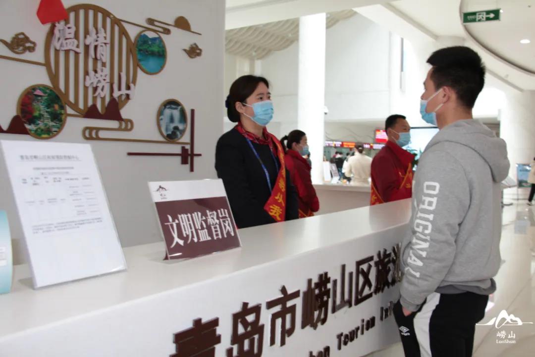 ▲崂山游客服务中心“文明监督”服务岗 摄影:王晶晶