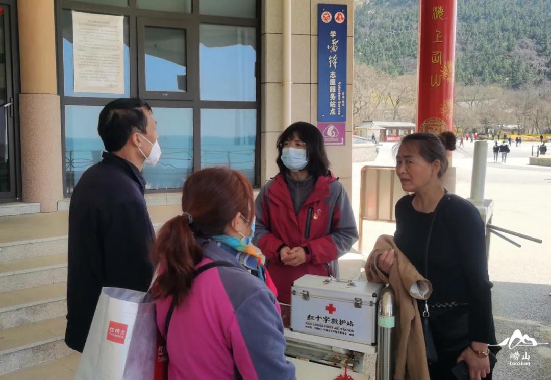 走进在崂山风景区可以看到,几名身穿蓝色马甲的志愿者格外醒目,他们穿梭于人群中,通过向游客义务讲解和帮助服务等多种形式,引导大家树立文明旅游、文明出行的理念,结合“温情崂山”服务品牌理念,志愿者们及时为老人、小孩、残疾人以及带婴幼儿出行的妇女及时提供轮椅服务、绿色无障碍通道、爱心妈妈屋,为受伤的游客进行初级救护提供药品服务;在大厅入口,为提升广大游客的文明旅游意识,志愿者们帮助维持入园秩序,帮助游客开通健康码,有序入园,提醒游客戴好口罩,保持适当距离,宣传文明出游注意事项;在青年志愿岗亭、学雷锋志愿岗、大厅问询处以及南北车场主干道,志愿者们为游客进行景区线路规划、景点讲解以及乘车指南等旅游咨询服务,为游客提供旅游指南,倡导游客安全出行。