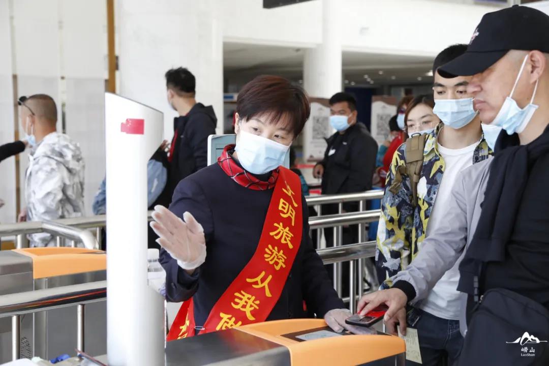 风华正茂恰青春,挥斥方遒当热血。五四青年节,“老”“少”青年们在自己的岗位上已经连续四天演绎着青春的角色。他们有身穿红蓝制服的蓝天救援队员,有身穿迷彩服的森林防火专业队员,有身着制服的公安、交警,还有佩戴工作证的景区工作人员,他们或驻足、或奔走,为游客提供景点咨询、旅游线路指引、预约购票帮助、秩序维护、安全引导等温情服务。“请大家排好队,保持间距,主动出示一下‘健康码’。”“前面10米右转就是公厕。”“小朋友,不要爬上去,注意安全!”他们每天要站近10个钟头,中午连吃饭的时间都没有,都是把饭打回去,等到两点左右客流减少的时候才轮流吃饭。早上9点,蓝天救援队队员王伟华在崂山仰口游览区内引导游客。王伟华介绍,早上7点就从家里出发了,虽然是节假日,但自己确比平时起的早。几乎每个节假日自己都会参与景区志愿服务,陪伴家人的时间是少了,但是以这样一个特殊的方式,来度过这样一个特殊的五一劳动节,内心还是很充实、很自豪的。据统计,五一期间,崂山游客服务中心全面落实全域旅游首问负责制工作要求,践行“最美风景是崂山人”服务理念,共协助游客网上预约购票6万余人次,详细解答游客咨询10万余人次,提供行李寄存、初级救护、失物招领1200余人次。
