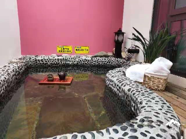 池水全部引自山顶的崂山水库,洗完身上滑溜溜的,感觉皮肤都变好了呢。记得再饮几杯崂山水冲泡的茶补充水分,回屋睡个好觉,舒服极了!