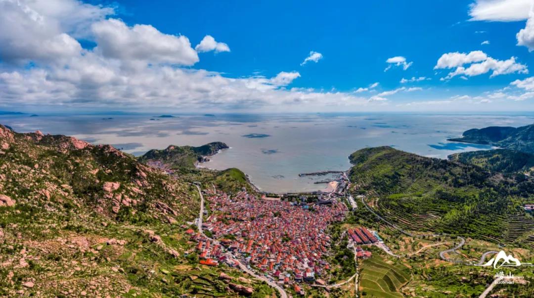 红瓦石墙,依山而建、错落有致的村居,在蓝天碧海的映衬下显得分外夺目,村子两旁的山坡上是碧绿的茶园,村后是高耸入云的巨石山峰,村前是碧蓝的大海,青山、梯田、茶园、村落、渔港、海洋相互映衬,共同形成了一道层次分明、错落有致的优美渔村风景,构成了一副壮丽的山、海、天画卷。