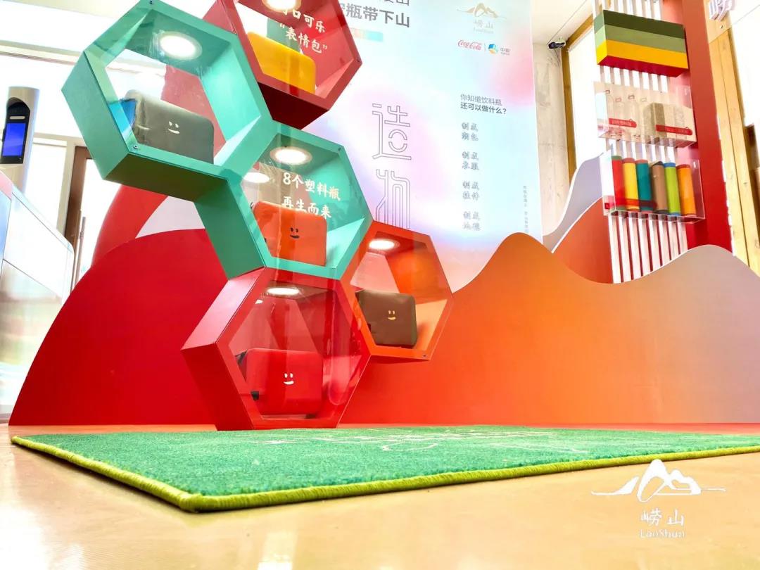 可口可乐在乎体 · 崂山风景区展示空间通过可口可乐不“瓶”凡展,科普塑料瓶的回收再造工艺,让人们看到 RPET(再生PET)材质产品的无限可能:那些回收的塑料瓶经过重塑,可以制作成各种极富创意的挂件、包包、地毯甚至衣服,将塑料回收从概念变为现实。