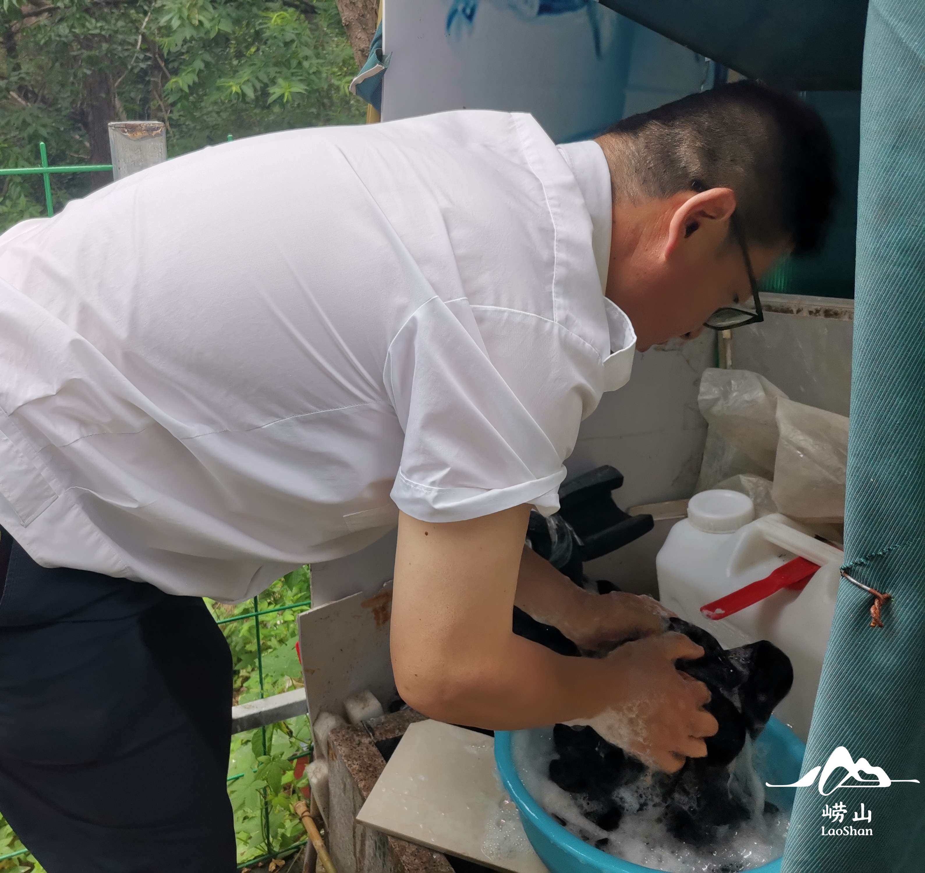 因天气炎热,游客想把外套留在检票口并提出想让工作人员帮助清洗一下。厚厚的外套上面布满一圈圈盐渍,散发着汗水的味道,王涛二话没说,接过外套立即动手一遍一遍水洗,并把衣服放在通风处,待下午游客下山时,外套基本晾干,他亲手把外套给游客披在身上。