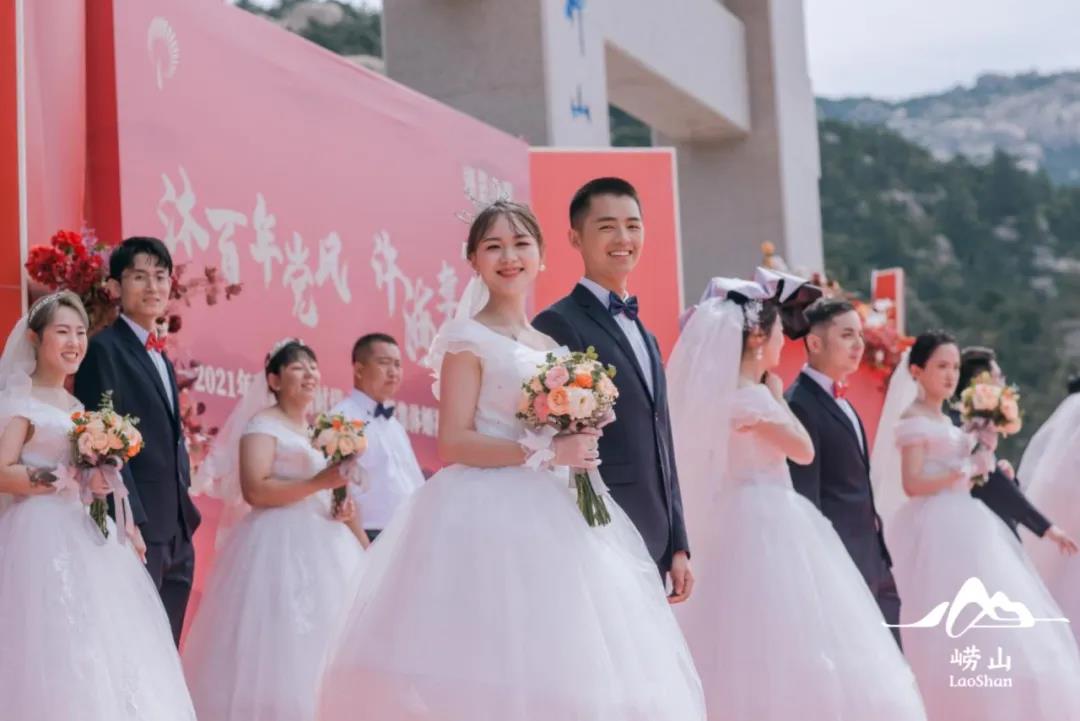 7月25日上午,由崂山区文旅委、崂山区委宣传部等单位联合举办的“沐百年党风 许海誓山盟”2021年新时代文明实践集体婚礼在崂山巨峰举行。来自社会各界的12对新人齐聚崂山风景区巨峰天地淳和广场,在家人、亲朋、来宾及游客的见证下,彼此许下爱的誓言。