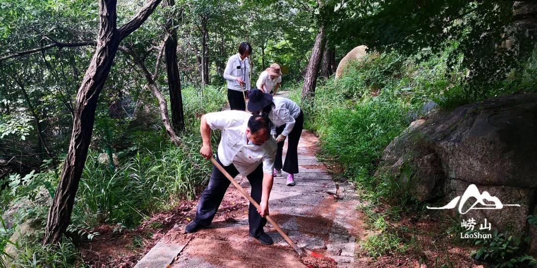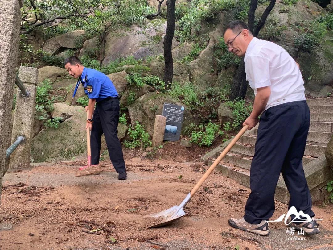 近期的一场大雨,崂山巨峰游览区降雨量达200毫米以上,雨后游览区内空气清新,山色青翠,针对这场大雨举行的一场文明志愿服务活动正如火如荼进行。