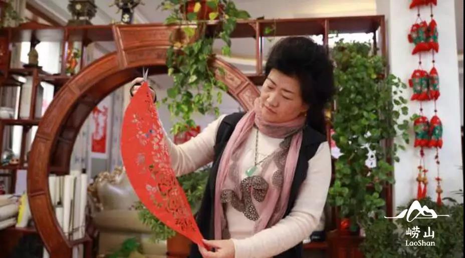 在中国众多的剪纸流派中,崂山剪纸风韵尤为独特。它既有着黄河流域剪纸的粗犷豪放,又有着汉代画像石像的细微繁缛。她就地取材崂山的民俗、传说、故事……在手工艺人的一双妙手下,就变成栩栩如生的画面。崂山剪纸非物质文化遗产传承人苏霞,是王哥庄家喻户晓的艺术家。苏霞的母亲就是一位民间艺人,一双妙手,裁剪出无数美丽图画。苏霞耳濡目染,从小就走上了剪纸的道路。初次拜访苏霞老师时,我们就很好奇她选择剪纸的原因,她回忆道:“儿时的记忆里满满的都是母亲的巧手,笔绘、折叠、再细细剪裁,一张张纸便在她指尖生出了花”,也就是从那时候开始,一剪刀一张纸就在她心里落下了根。