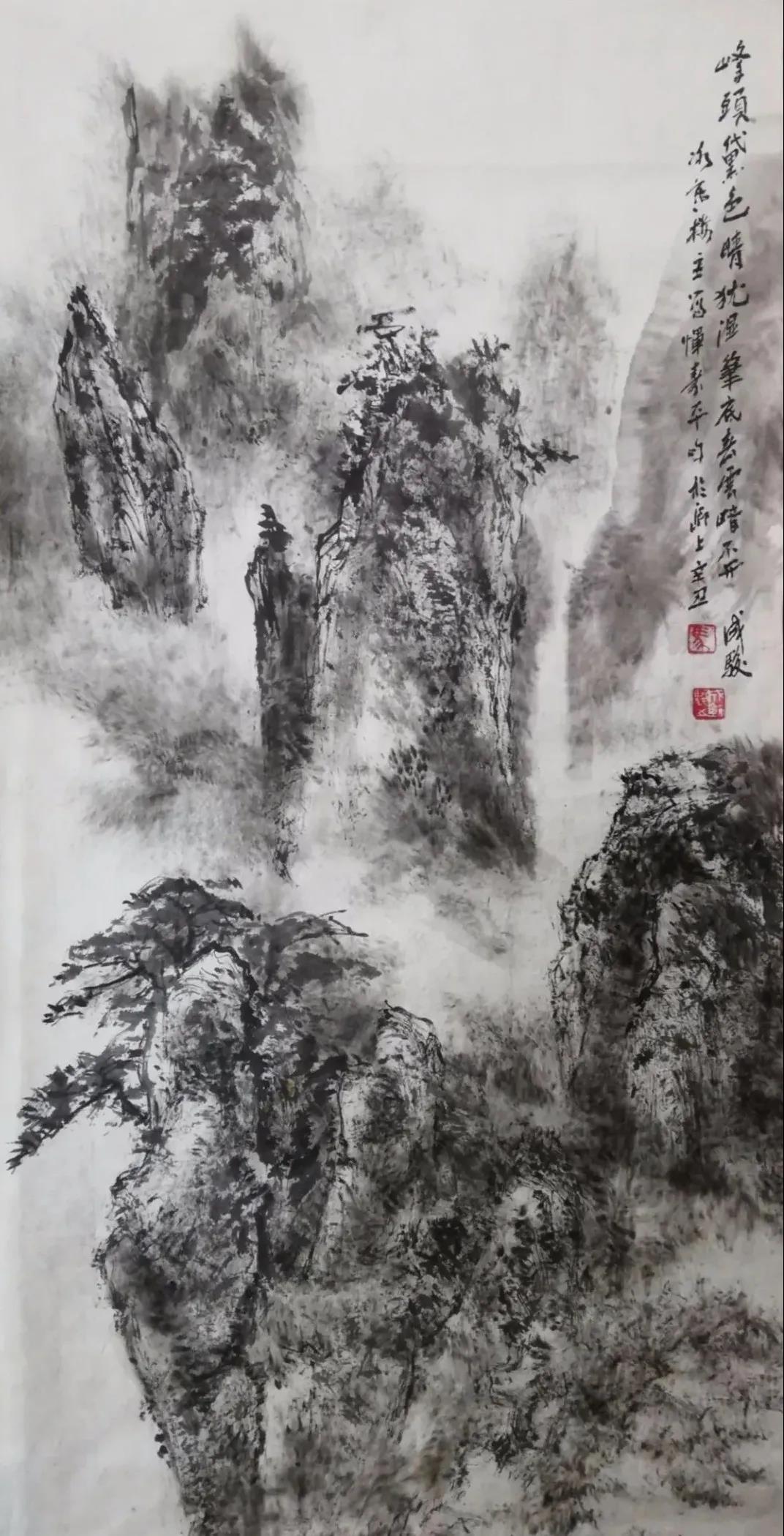 | 峰头黛色晴犹湿 笔底春云暗不开 |