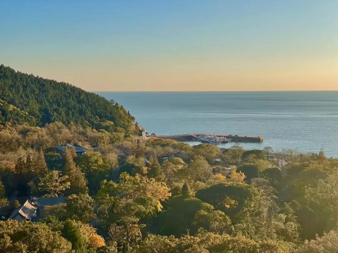 尽管也是气喘吁吁,但是登顶之后的景色会让你疲累顿消,正好赶上了傍晚的日落,夕阳的余晖洒落在海面上,这一刻,真的感受到了山海波澜岁月静好...