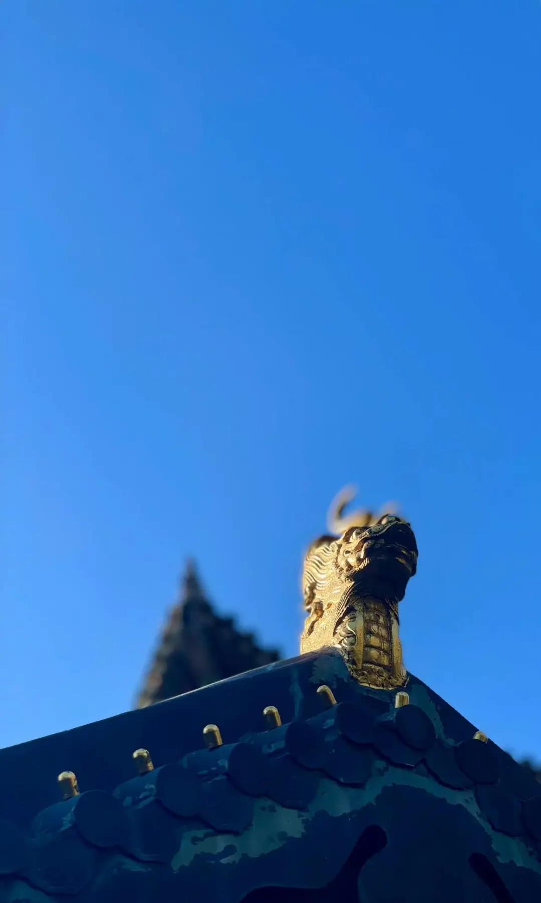 被第一场雪和秋叶一起覆盖过的红砖墨瓦,在深秋暖阳的照耀下,分外耀眼。