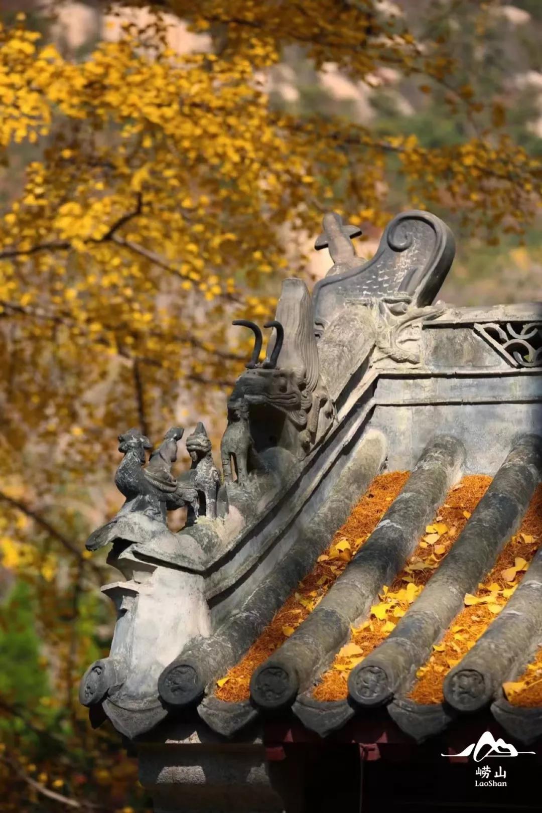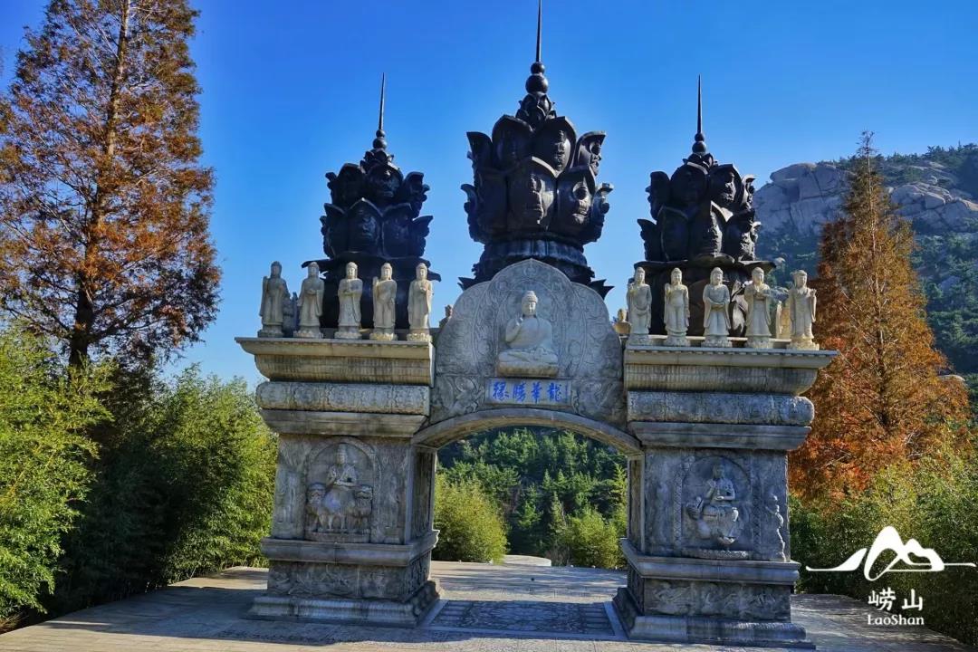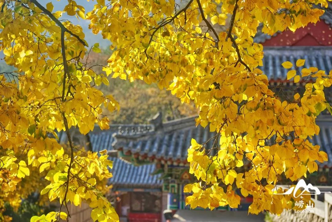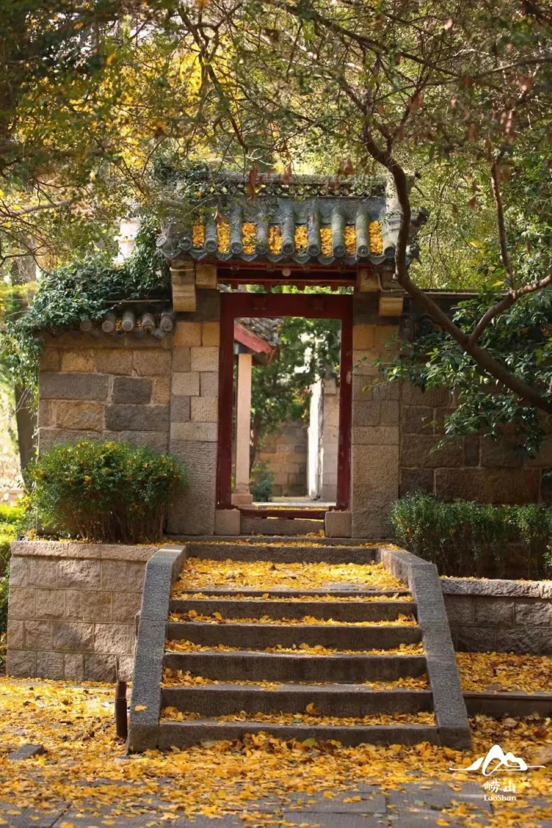 崂山的华严游览区,时间在这里好像拖慢了脚步,至今依然是一副满园金色的深秋模样。华严游览区以古刹“华严寺”以及崂山十二景中的“那罗延窟”最为著名。此处依山傍海,风景秀丽,每年临近十二月,各式秋叶便与古刹相映成趣、禅意幽幽,尽显崂山之美。