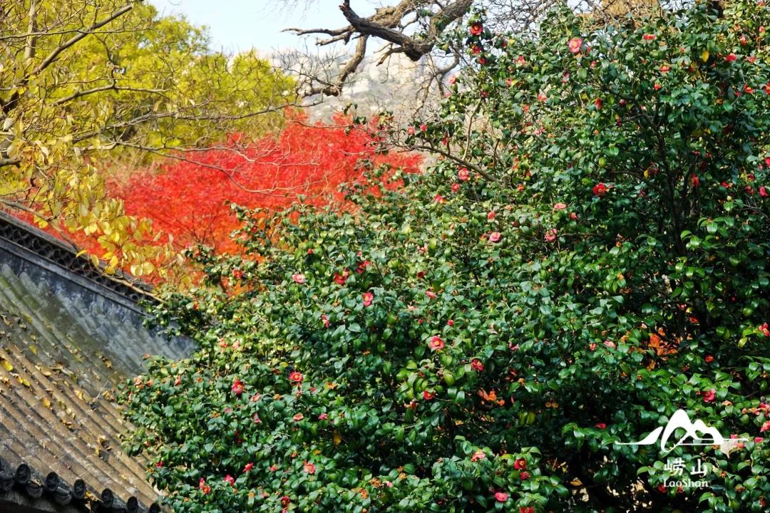 见识过太清宫银杏和红枫的绝代风华,终于轮到耐冬登场了,看这一朵朵红艳如火的耐冬花,从绿叶中探出头,随风摇曳、风姿绰约,让人不由自主想起,蒲松龄笔下那位,红衣翩翩的绛雪姑娘。
