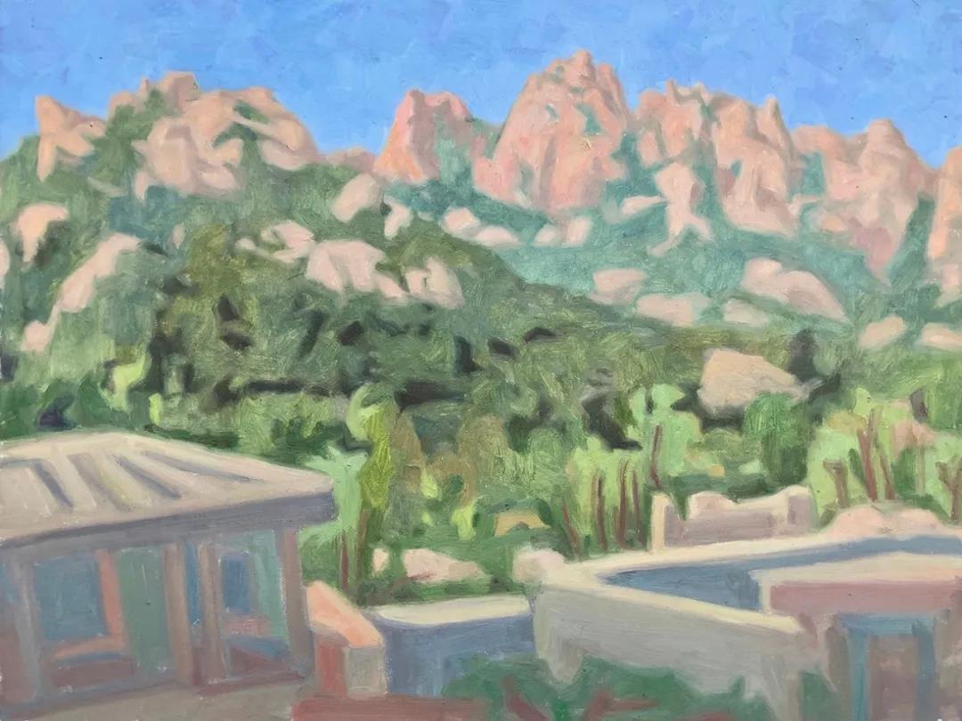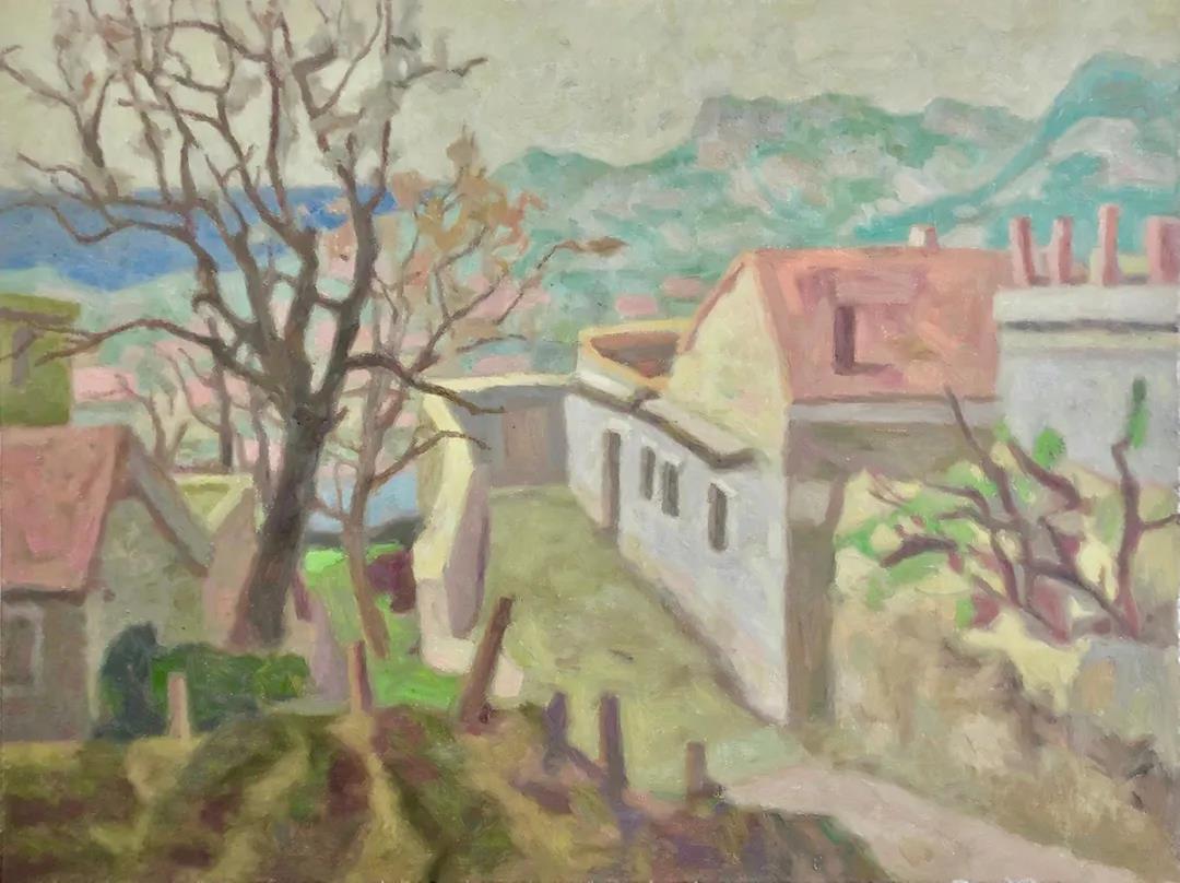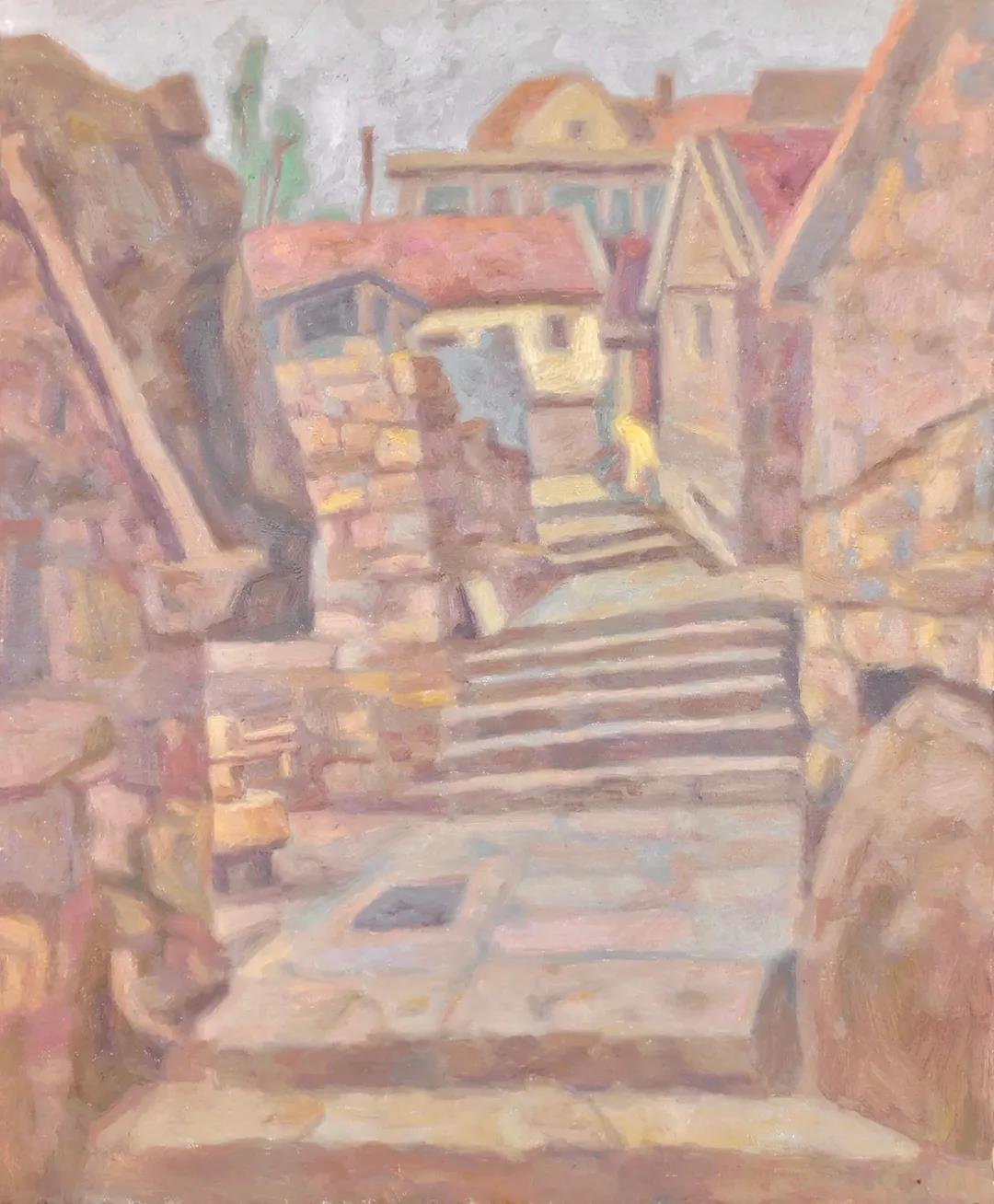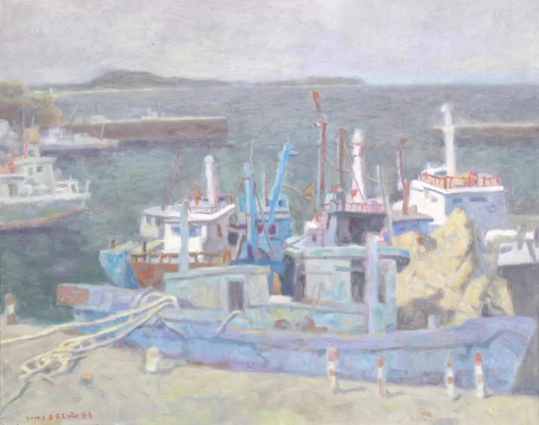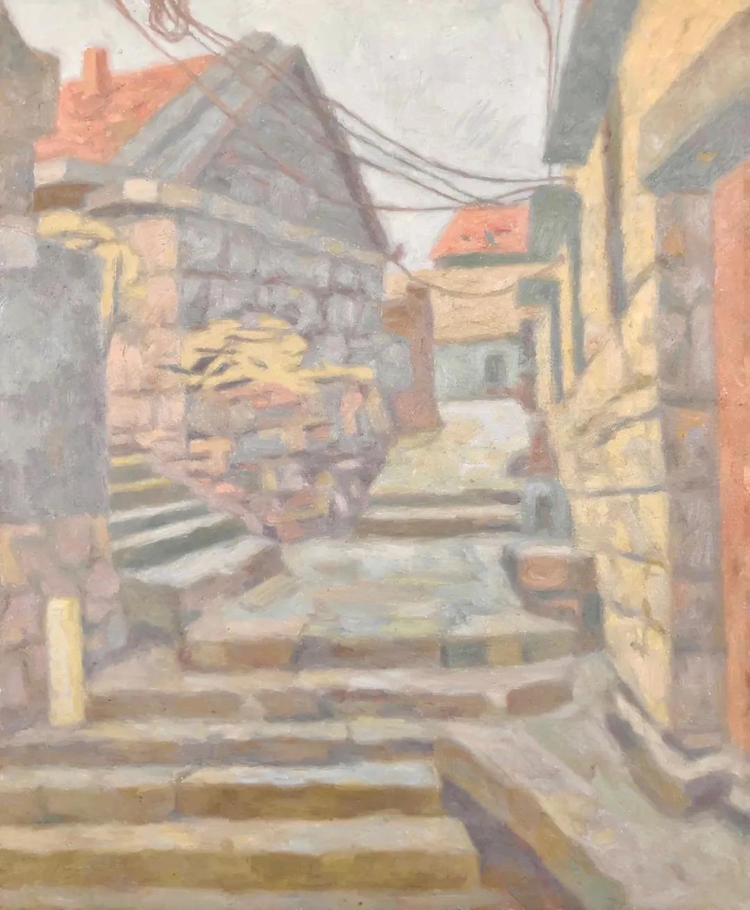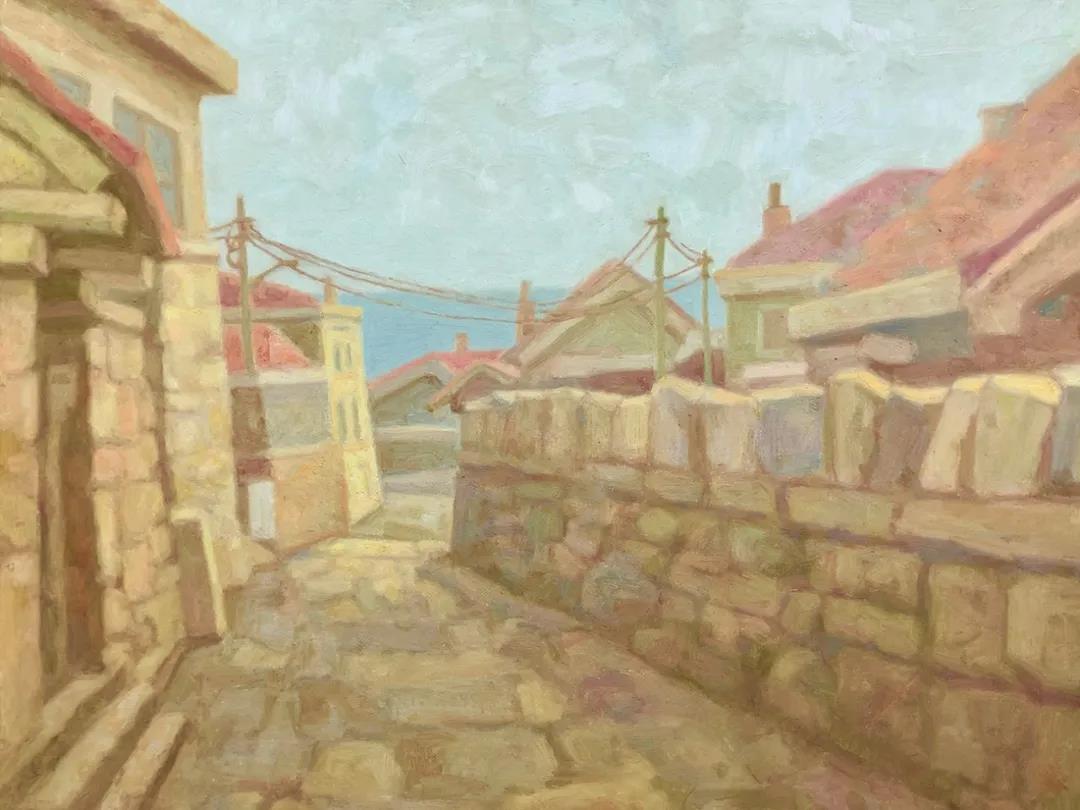 我的第一印象就是画家有品格,是对形而上的研究,他即没有陷入青岛欧式建筑、崂山村落、树木山峰和其他场景的复杂性,没有随潮流而动,也沒有地方惯性。只是借助这些景象画自己的线条、自己的图形、自己的结构、自己的色彩。作为意象表现传达着形而上的大美,让人耳目一新,过目难忘。