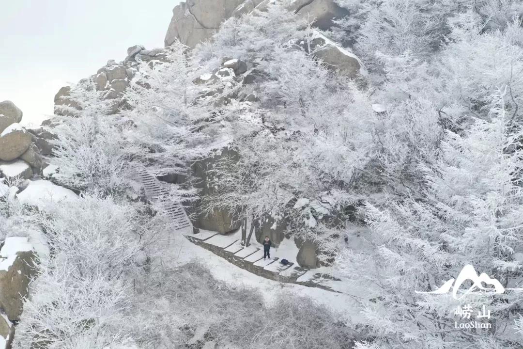 “忽如一夜春风来,千树万树梨花开。”冬月严寒,大地冰封,在崂山海拔最高的巨峰游览区,山中的树木刚刚经历了大雪的洗礼,今天便自行用雪白的霜花装扮自己,远望去,一派雪国天境之景。