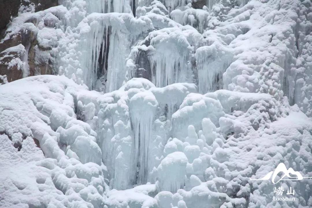 白雪皑皑、冰瀑奇观,2022年,新年第一场雪为崂山换上了最美的新衣,摄影师们踩着厚厚的积雪走进崂山给我们带来了航拍大片。
