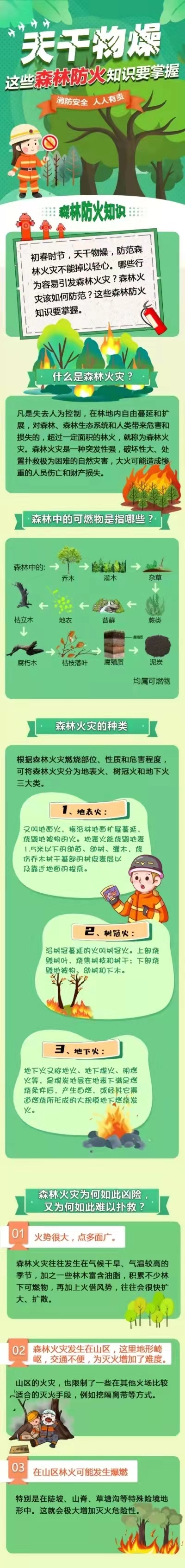 森林火灾是一种突发性强、破坏性大、处置救助较为困难的自然灾害,危害极大。进入春季,天干物燥,是森林火灾高发期。春天草木干,防火要当先,进入林区必须严格遵守森林防火规定,严禁一切户外用火。
