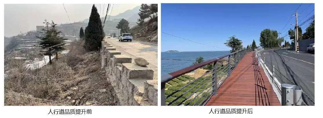 崂山风景区仰口至垭口区域的道路既是青岛重要的山海风景线,又是沿线6个社区居民出行的唯一主通道,在景观价值、地理位置、旅游资源等各方面都具有独特的生态优势和发展魅力。今年,崂山风景区结合全区乡村振兴工作,对这部分路段进行了全面的环境整治和品质提升。据介绍,该工程的实施实现了五个优化:一是空间视觉优化,实现架空线缆下地;二是道路弯度优化,增加行车舒适度、提升道路交通安全;三是村庄道路出入口优化,出入口布局更加合理;四是环境景观优化,周边环境与5A景区的要求更加契合;五是空间安全优化,增设人行步道,实现人车分离。经过专业的规划和改造,更是将原来的社区垃圾场变成了视野无敌的景观台,出行道路焕然一新,让社区居民的居住环境发生了质的飞跃。崂山区文旅委规划建设处处长李新萌说:“我们做品质提升工程的最终目标就是让景区社区居民的笑脸和质朴的笑声也变成崂山里面的风景线”。