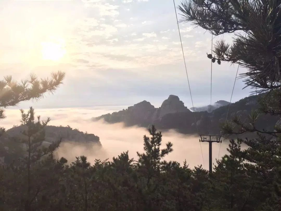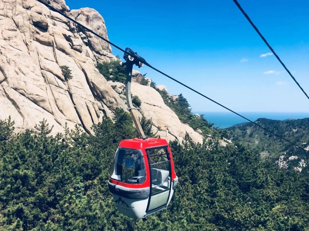 白云青山触手可及,回头望,云雾飘渺着笼罩在海上,随着缆车不断上升,仿若踏云前行,置身仙境,登至崂顶,穿过先天桥,亲临摘星亭,擦去攀登时流下的汗水,体会“手可摘星辰”的自由,方知登高才能望远,付出会有收获。