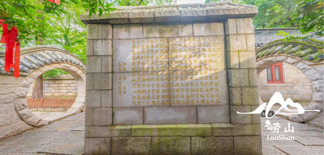 宫院里的照壁上镌刻“海上宫殿”四个大字,题字为清代著名书法家华世奎手书真迹,照壁背面刻有《太平宫记》。全文为“上苑太平山之名,传始自汉代,五代唐纪同光二年甲申,道士刘若拙自蜀来崂潜修道玄。宋建隆元年庚申,太祖赵匡胤闻拙为前朝刘知远之后,诏京入觐,谈玄称旨,太祖大悦,敕封华盖真人,留京布教,且经准奏奉敕回崂。时太祖殁,宋太宗改元太平兴国,敕建太平兴国院,即今太平宫。金泰和戊辰,演道主教长春真人邱处机莅此,赋诗廿首,镌于宫北之白龙洞。明万历年间,太监边永清、杨绍慎替皇妃来宫出家,重修殿宇。金、元、明、清屡经修葺。名人硕士多履于此,题词刻石遗迹犹可扪视。一九七九年,市人民政府拨款重修,乃复旧观,谨撰此文以记之。邓山撰,蔡省庐书。”这篇文字概述了太平宫的整个发展历程。