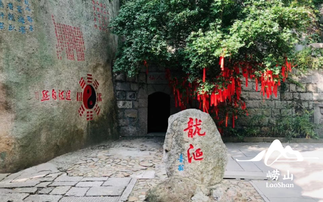 从仰口游览区的入口,沿着苍松翠竹掩映的石阶路缓缓上行,偶有流水潺潺,鸟语啾啾。迎面道旁有两块巨石,左侧刻字“疑是幻境”,是1937年时任即墨县县长的孙文彬题写,右边刻字“华盖迎宾”,是原山东省委书记高启云所题。两边恰好各有一株古老的赤松,高达10米,树龄都在300年以上,虬枝盘绕,茂盛葱茏,山风吹来随风摇摆,仿佛在迎接远来的客人。“华盖迎宾”的美好寓意由此而来,又暗合了崂山太平宫创始祖师刘若拙“华盖真人”的道号,词义双关,传为美谈。