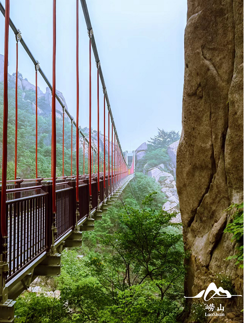 崂山的夏天,你可以体验铁索桥的乐趣。
