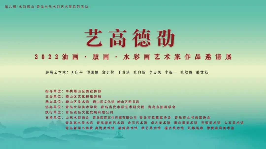 第八届“水彩崂山”青岛当代水彩艺术展系列活动“艺高德劭”——2022油画·版画·水彩画艺术家作品邀请展,将于8月6日上午9:30,在崂山区美术馆开展。