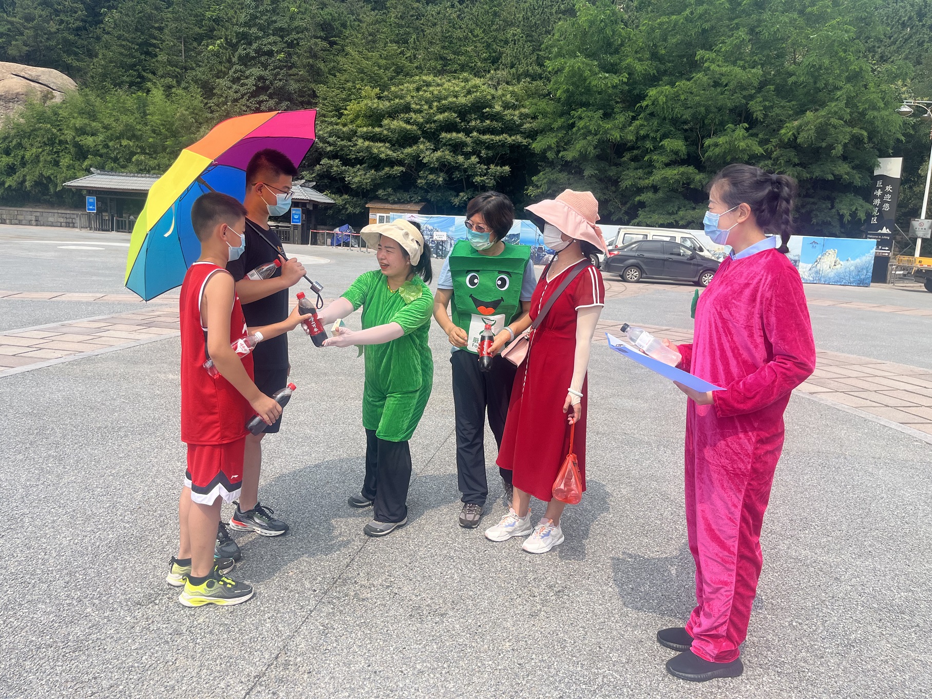 记者在活动现场看到,四个身穿“卡通分类垃圾桶”的小玩偶正在为游客发放“无痕旅游垃圾袋”,游客将登山过程中产生的垃圾放到垃圾袋中,下山后便可在服务台兑换到“小礼品”一份。“崂山定制扑克”、“崂山矿泉水”等崂山特色礼物都备受游客青睐,一位参与活动的游客说到:“趁着暑假,和孩子一起来参加这个活动,感觉非常有意义,现场的玩偶表演我们非常喜欢,通过这种寓教于乐的形式,孩子在心中会牢固树立起文明意识、环保意识。”