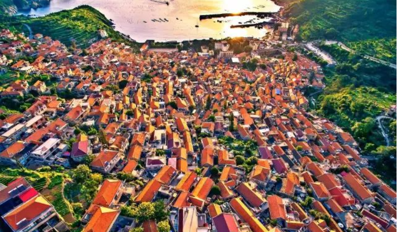 俯瞰掩映绿树中的青山渔村,与碧波荡漾的青山湾次第呼应,犹如空谷幽兰。